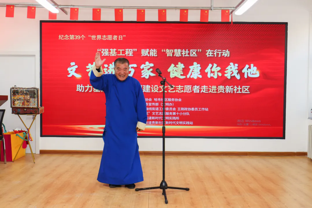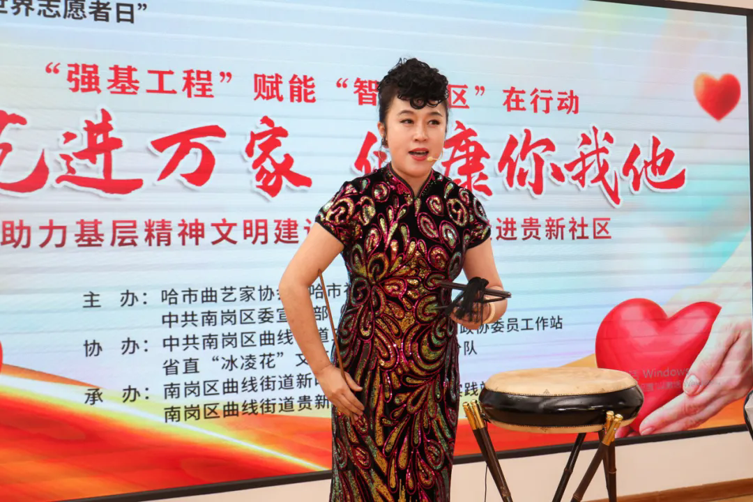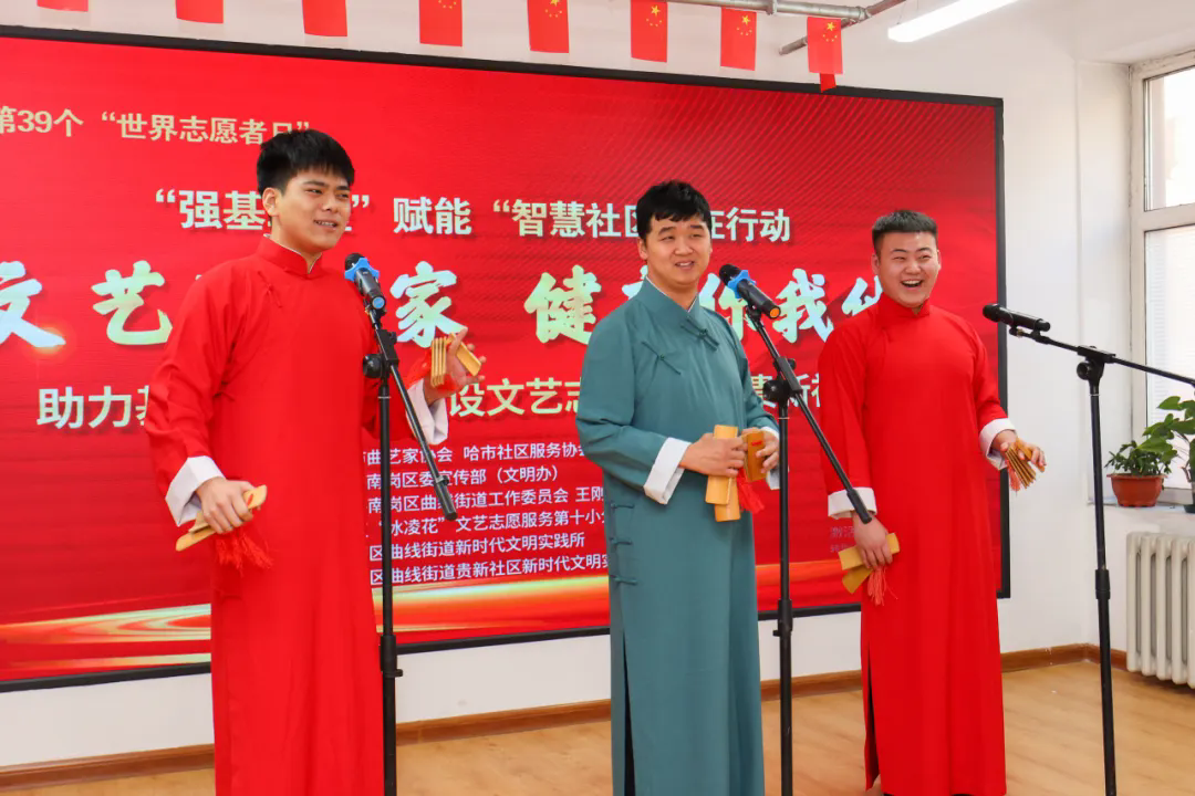 12月3日下午,省文艺志愿者协会副主席、全国学雷锋先进典型“最美志愿者”王刚带领黑龙江省“冰凌花”文艺志愿服务团省直第十小分队与哈尔滨市曲协共同走进哈尔滨市南岗区曲线街道贵新社区开展强基工程——“文艺进万家 健康你我他”文艺志愿服务活动。