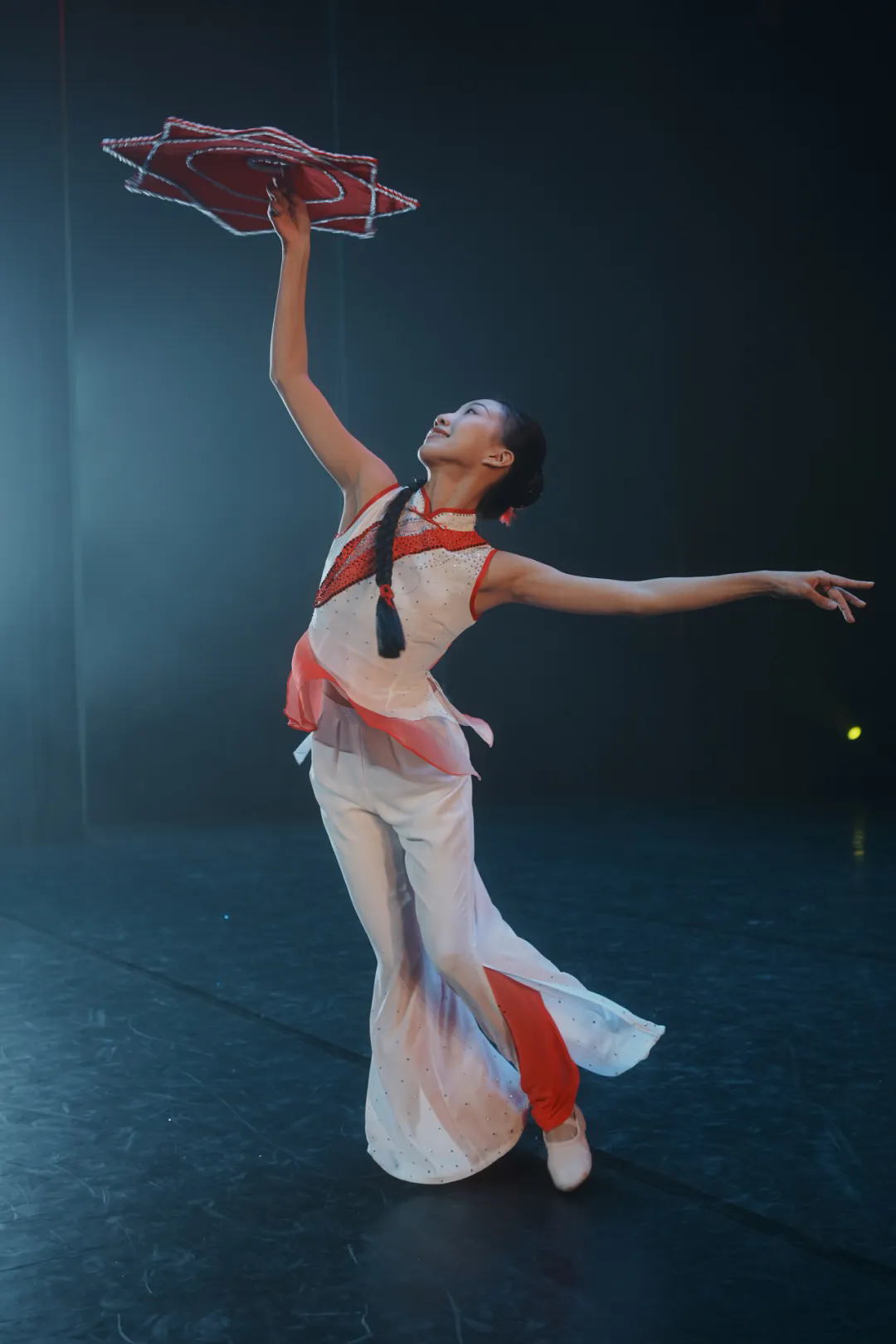 东北秧歌组合《绢花情》在编导王铎、关晓琳的细致打磨下,不仅完美展示了东北秧歌的热烈与奔放,更巧妙融入了细腻的情感与深刻的文化内涵,艺术层次更加丰富多元。在指导教师乔梁、于錾鑫的悉心指导下,耿鹤嘉经历了无数次的排练与修正,每一次的失误,都化作她内心更加坚韧的力量,每一滴汗水,都如同甘霖般滋养着她对舞蹈的热爱之花。持之以恒的刻苦努力与不懈追求,终于在“顶尖”舞台上璀璨绽放,耿鹤嘉以其独特的舞姿技巧与情感表达将作品演绎得淋漓尽致,以非凡的舞蹈才华与潜力赢得了掌声与赞誉。