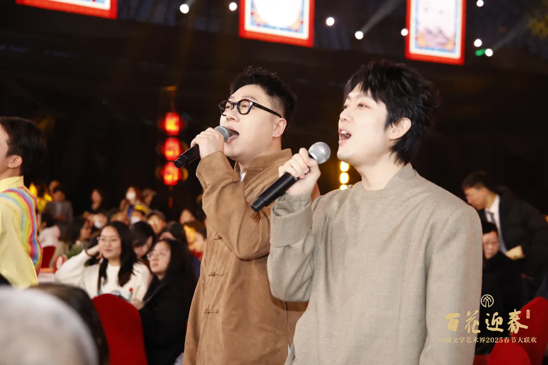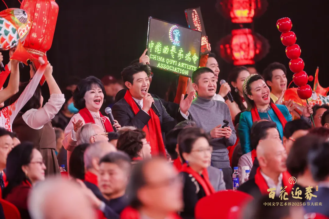 在喜庆的氛围中,各全国文艺家协会嘉宾代表与艺术家共同完成的十三首歌曲汇聚成了《蛇年迎新春 开门送祝福》,2025“百花迎春”拉开大幕,开启了以“新春齐回家”为题的第一篇章。四十余位文艺工作者与各全国文艺家协会的嘉宾代表们共同唱响辞旧迎新的壮丽赞歌,台上台下成为欢乐喜庆的海洋。