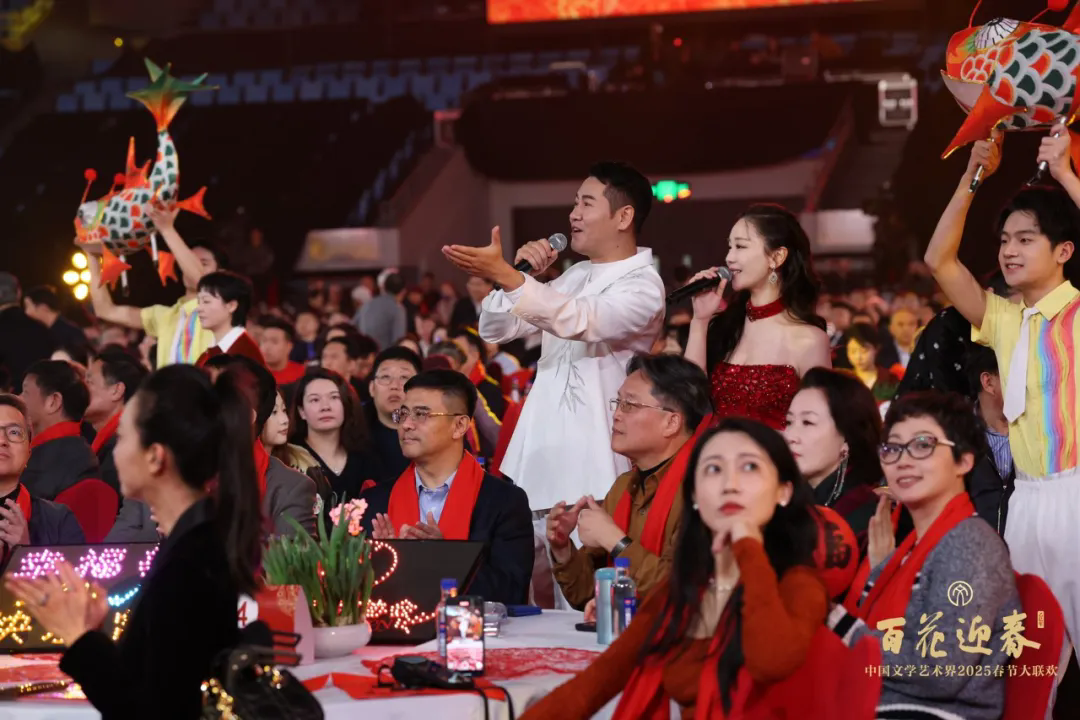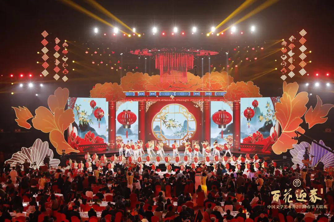 “百花迎春——中国文学艺术界2025春节大联欢”由中国文学艺术界联合会主办,各全国文艺家协会、中国文学艺术基金会协办,中国文联文艺志愿服务中心承办。共500余位老中青文艺工作者参与演出。此外,众多高校学生志愿者自发报名参与本次大联欢各项工作,在实践中学习知识,在文艺中浸润心灵。20余家中央新闻媒体参与现场报道,百度、爱奇艺、快手、抖音、微博等视频平台给予大力支持。以文化人,以艺通心,本次“百花迎春”大联欢以文艺沟通社会各界形成多方合力,助力文艺事业繁荣发展。