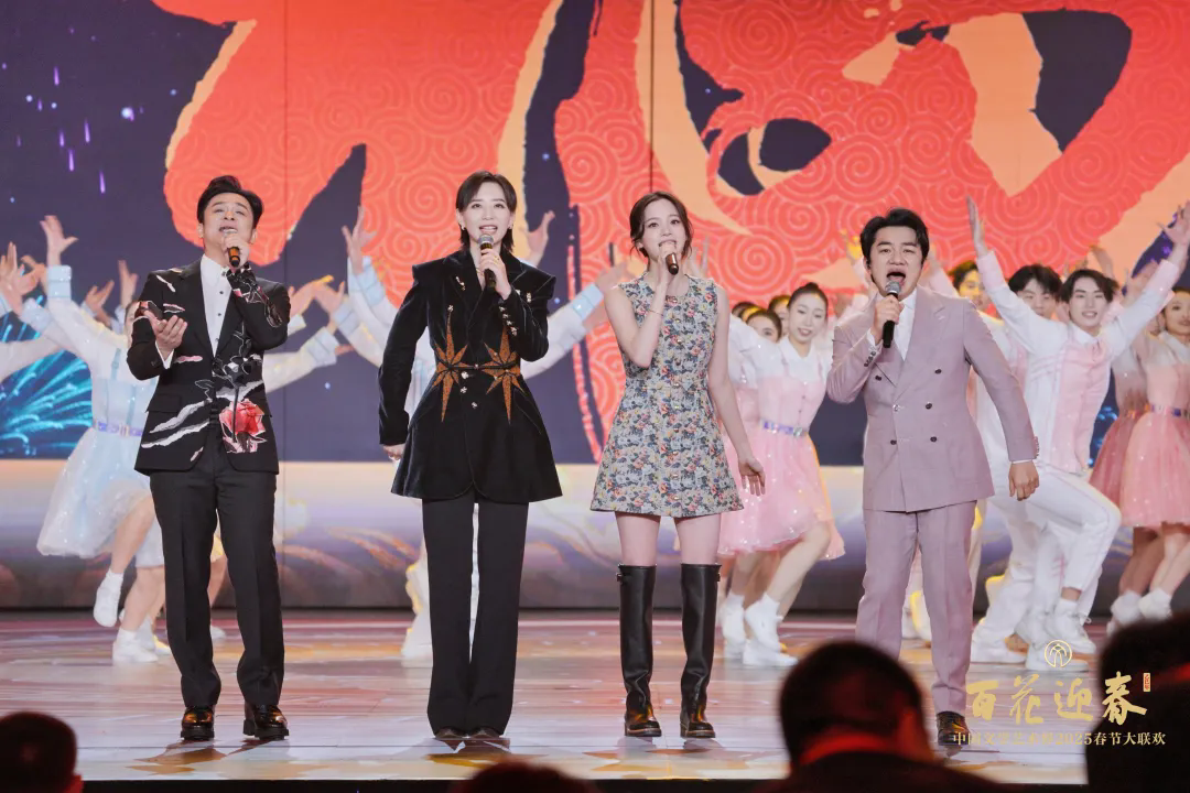 本次大联欢以“共唱团圆家,百花再出发”为主题,由周涛、任鲁豫、春妮、张蕾、郭晓东、蓝羽、姜妍、张韬共同主持,整体分为“新春齐回家”、“深情唱团圆”、“百花满家园”三个篇章,围绕“小家、大家、国家”展开。在温暖团圆的氛围中,文艺工作者以深厚的“家国情怀”展现出对时代的热爱与担当。晚会上各类艺术作品精彩纷呈,讲述着国家经济腾飞的壮丽篇章,生动展现了文艺界的精神风貌与蓬勃活力,体现了文艺工作者们在文化自信道路上的坚定步伐。在中国式现代化的伟大进程中,文艺工作者们不仅彰显了举旗帜、聚民心、育新人、兴文化、展形象的使命担当,也让广大人民群众感受到文化繁荣背后的伟大力量。