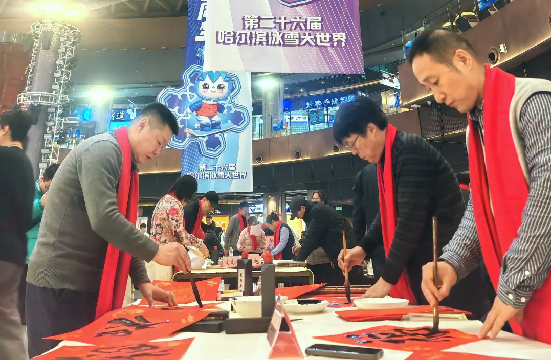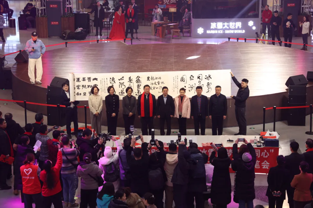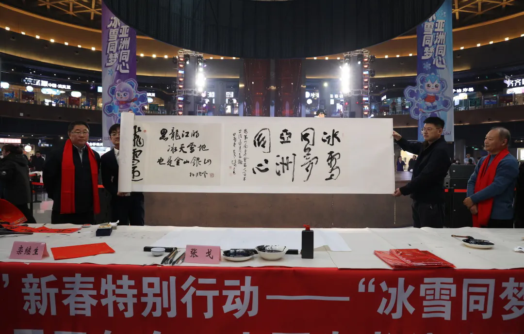 为弘扬冰雪文化,推动文旅融合,激发全民参与亚冬会的热情,1月20日上午,由省委宣传部、省文联携手哈尔滨冰雪大世界股份有限公司共同举办的“冰雪同梦 亚洲同心”迎庆第九届亚冬会百人百米书法作品长卷笔会活动,在著名旅游景点哈尔滨冰雪大世界举办。
