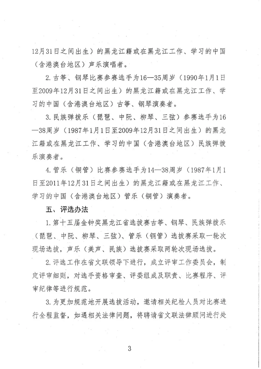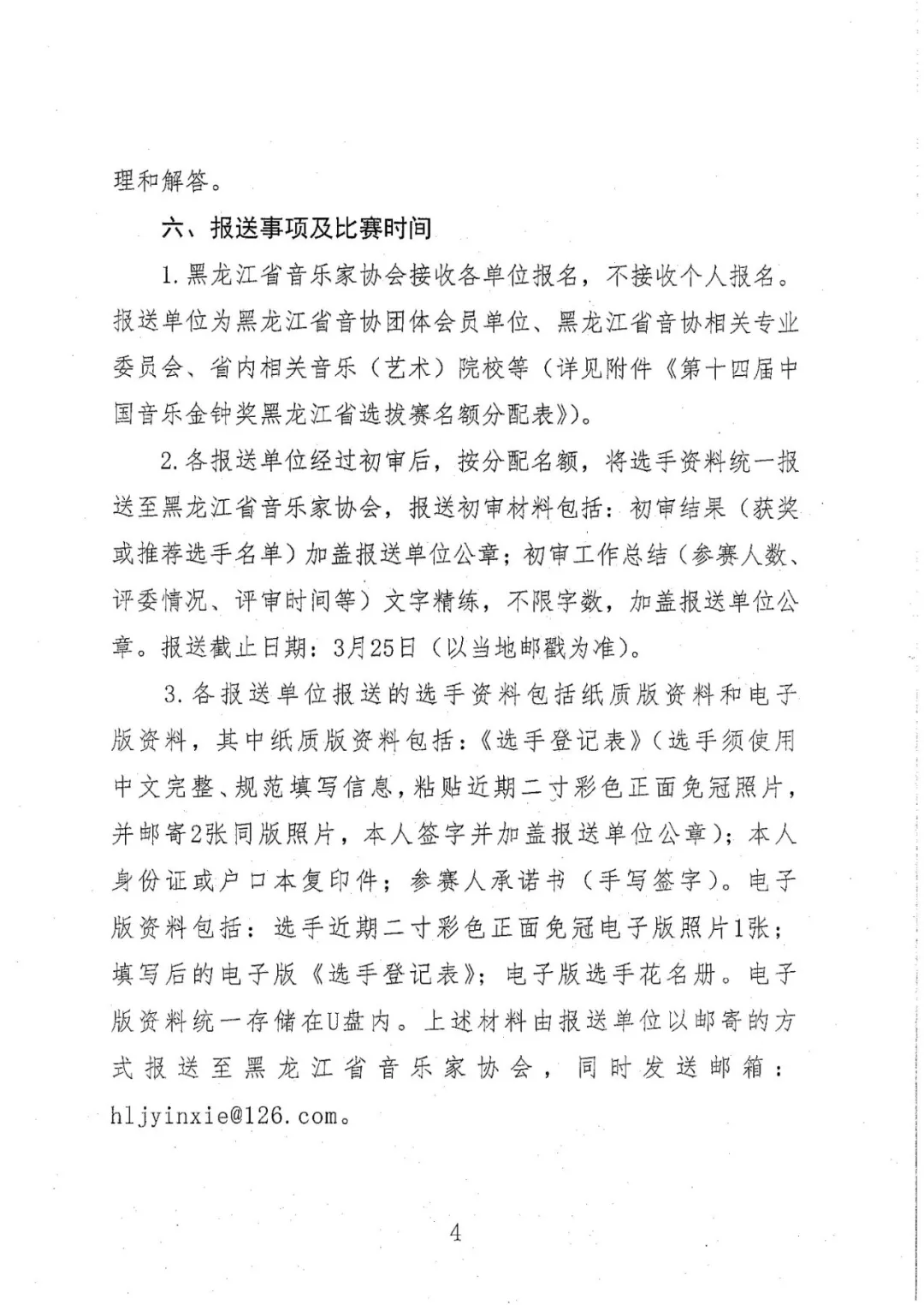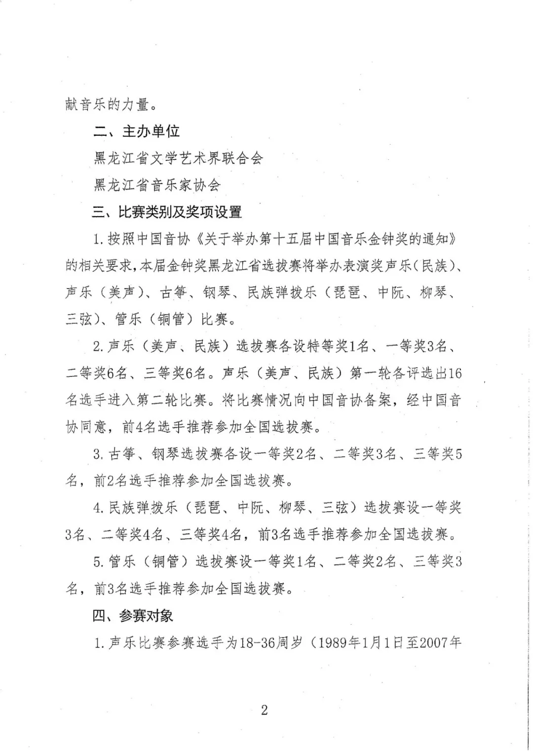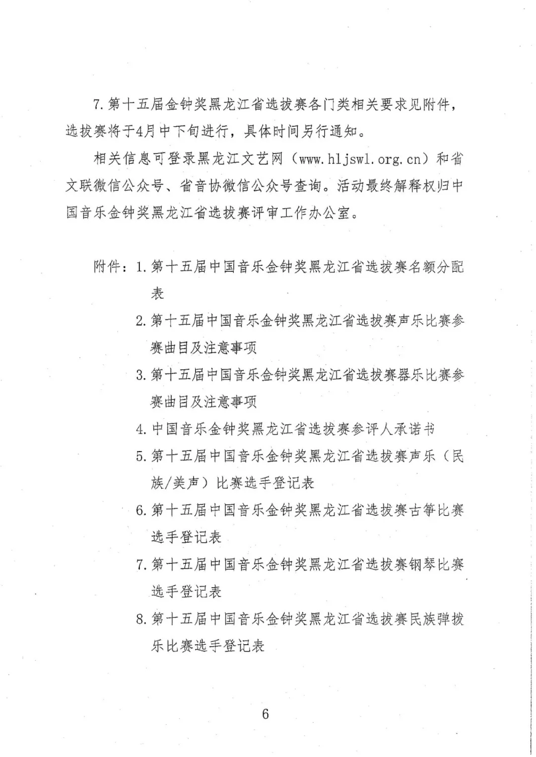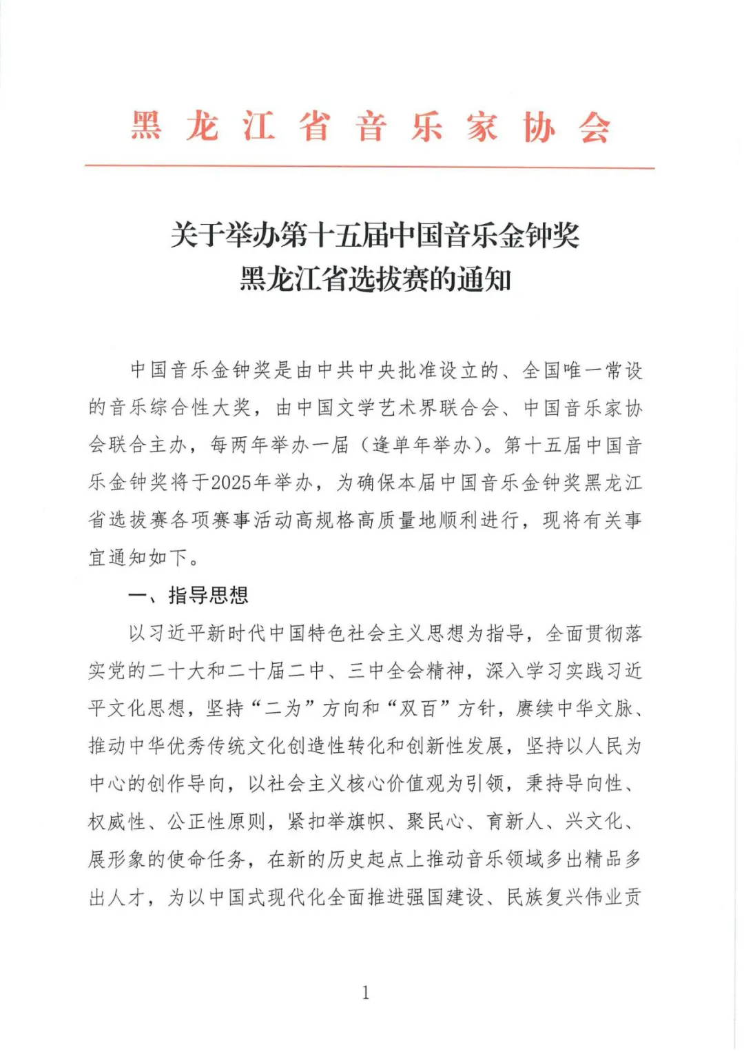 关于举办第十五届中国音乐金钟奖黑龙江省选拔赛的通知