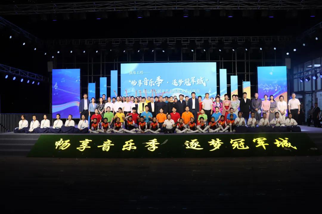 6月23日,由黑龙江省文学艺术界联合会、中共七台河市委员会、七台河市人民政府主办,黑龙江省文艺志愿者协会、七台河市文化广电和旅游局、七台河市商务局等单位承办的 “强基工程——‘畅享音乐季·逐梦冠军城’文艺志愿服务惠民演出”在省文联首批“文艺两新”集聚区实践基地七台河市桃山区万宝创意设计产业园盛大举办,现场流光溢彩、人潮涌动,掌声、欢呼声此起彼伏,气氛热烈非凡。演出通过黑龙江电视台“联播说”、七台河市融媒体中心“活力七台河”等平台同步直播,线上线下吸引近200万人观看。