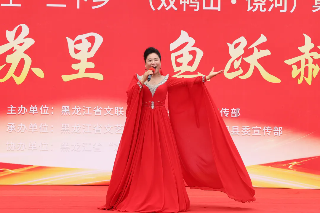 省书法家协会副主席高少珂等青年志愿者在激昂的《赛马》《扬鞭催马运粮忙》等器乐伴奏下挥毫泼墨,将书法艺术与器乐表演完美融合。二人转经典《西厢记》片段和赫哲族特色民族歌舞等节目,以浓郁的地方风情和民族特色赢得观众的喜爱。饶河县作为《乌苏里船歌》的诞生地,当经典的旋律响起,观众的激动与自豪被点燃,纷纷高声跟唱。