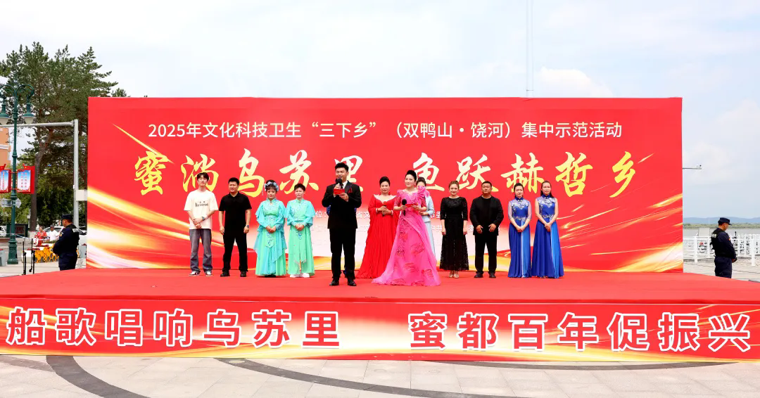 7月25日上午,由黑龙江省文联、中共双鸭山市委宣传部主办,省文艺志愿者协会、中共饶河县委宣传部承办,黑龙江省“冰凌花”文艺志愿服务团、饶河县文联等单位协办的“蜜淌乌苏里・鱼跃赫哲乡”省文联文化科技卫生“三下乡”活动在饶河县火热开展。本次活动以丰富的内容、多元的服务,为当地群众送上了一场集文化惠民、科技普及、健康服务于一体的“便民盛宴”。