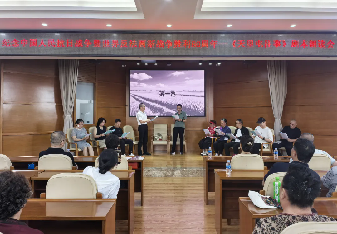 为纪念中国人民抗日战争暨世界反法西斯战争胜利80周年,8月28日,由黑龙江省戏剧家协会主办,哈尔滨文学创作院、哈尔滨老年人大学等单位共同参与的《天里屯往事》剧本朗读会在黑龙江省文联举办。