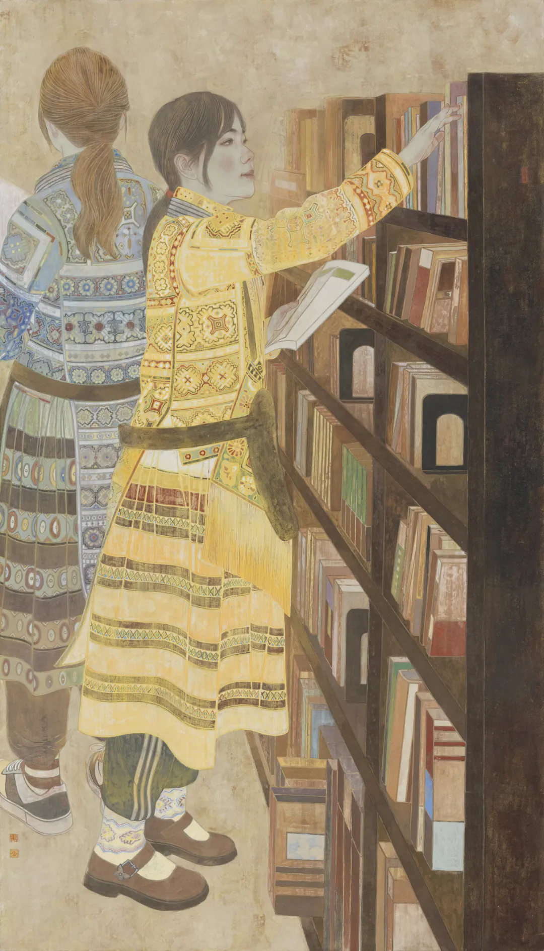 李亚洁《丝路·蟒袍的文明远行》综合材料绘画