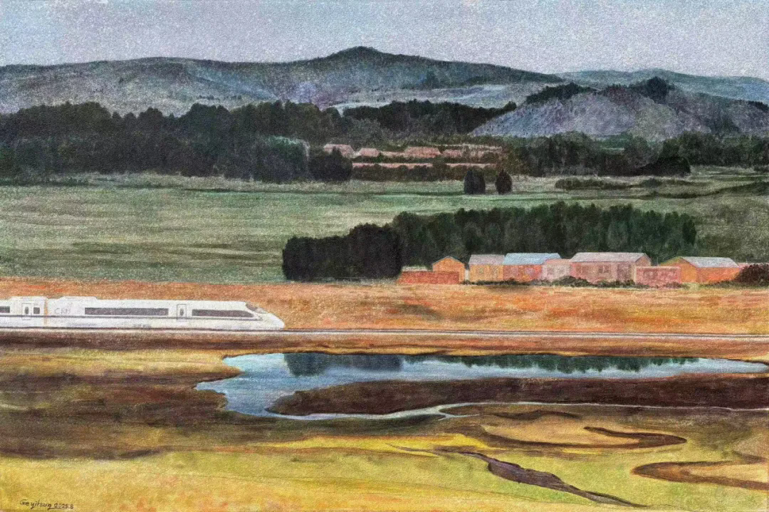 葛易航 《龙江纽带》 水彩粉画