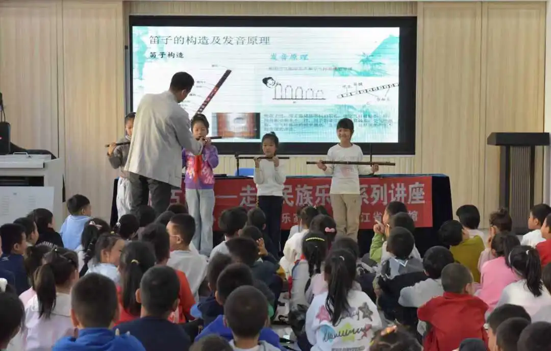 为深入弘扬中华优秀传统文化,推动民族音乐普及教育,10月23日,由黑龙江省音乐家协会与黑龙江省图书馆联合主办的“龙音古韵——走近民族乐器系列讲座”第52期在哈尔滨医科大学附属逸夫小学校举办。本期邀请青年笛箫演奏家、省音协竹笛专委会副主任、省级非遗“北派竹笛艺术”代表性传承人谷银秋,为近200名师生带来一场兼具知识性、艺术性与互动性的“竹笛基础入门”讲座。