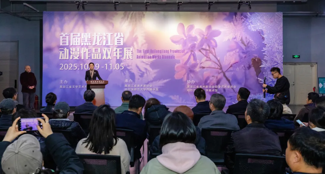 10月29日上午,由黑龙江省文学艺术界联合会主办,黑龙江省美术家协会、哈尔滨师范大学传媒学院承办,黑龙江省美术家协会动漫艺术委员会、哈尔滨师范大学美术馆协办的“首届黑龙江省动漫作品双年展”,在哈尔滨师范大学美术馆开幕。展览以“扎根黑土·融汇创新”为主题,共展出130件作品(含特邀作品),集中呈现了近年来黑龙江省动漫艺术创作的成果,既展现了冰雪文化与民俗资源通过动漫语言实现的创造性转化,又为龙江动漫事业的高质量发展注入了新动能。