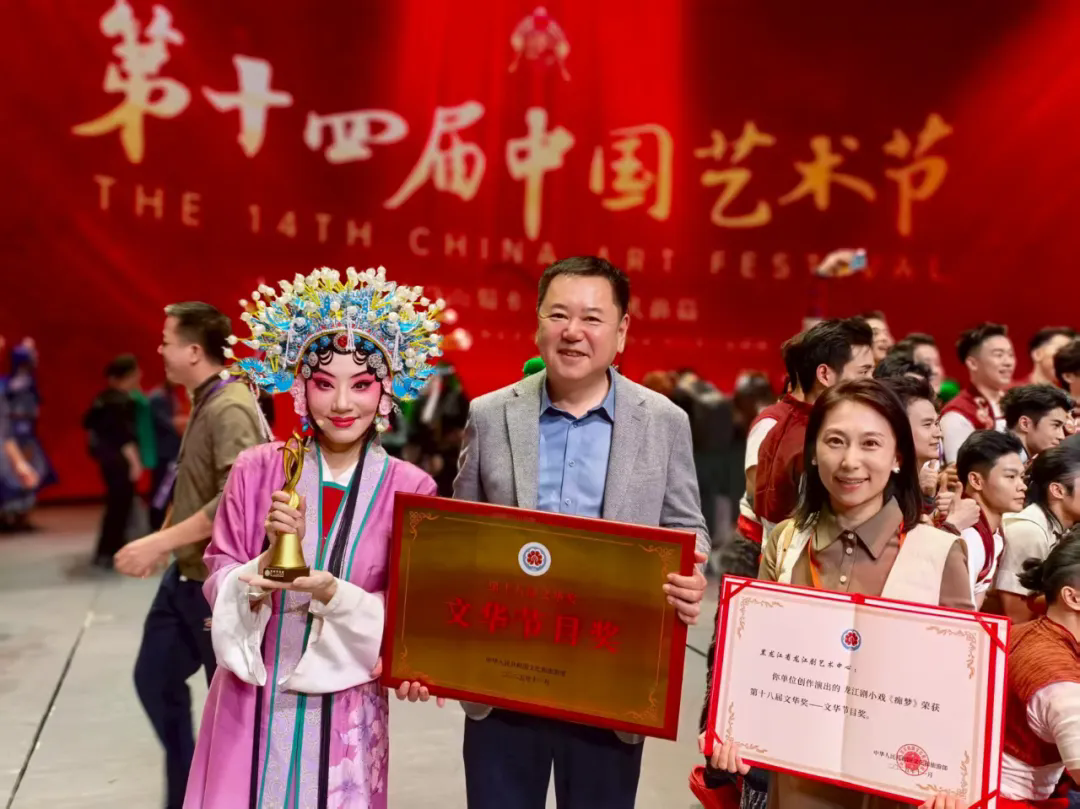 11月4日,黑龙江省戏剧家协会团体会员单位——黑龙江省龙江剧艺术中心原创龙江剧小戏《痴梦》荣获第十八届文华节目奖,省剧协副主席吕冰峰作为代表登台领奖。