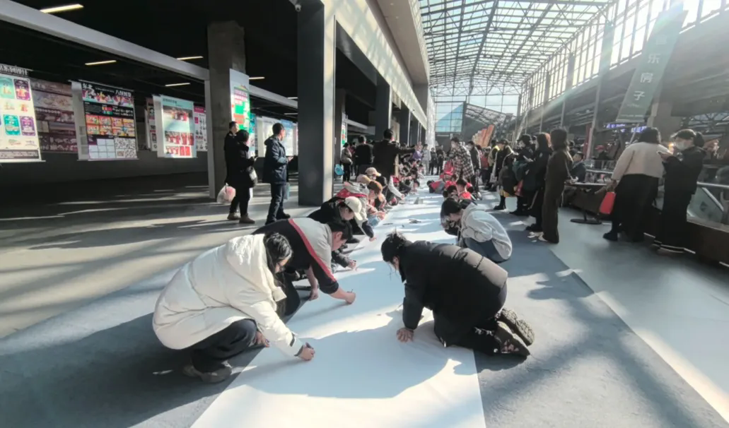 为增强展览的互动性、参与性,展览特别设置了文创DIY实践区与“百米长卷共绘”公共艺术项目,现场气氛热烈。
