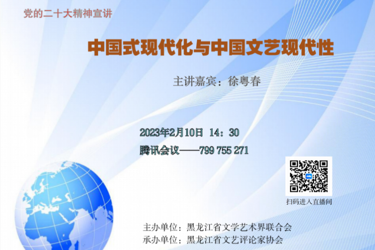 为不断把学习宣传贯彻党的二十大精神引向深入,2月10日下午,由黑龙江省文联主办、黑龙江省文艺评论家协会承办的全省文艺评论界学习贯彻党的二十大精神宣讲报告会在线上举办。中国文艺评论家协会副主席兼秘书长、中国文联文艺评论中心主任、《中国文艺评论》杂志主编、《中国艺术发展报告》主编、中国文联第十一届全委会委员徐粤春作宣讲报告。