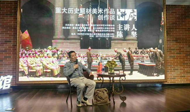2017年5月26日下午,知名军旅画家陈坚在958号艺术馆,做了题为“重大历史题材美术作品创作谈”的学术讲座。