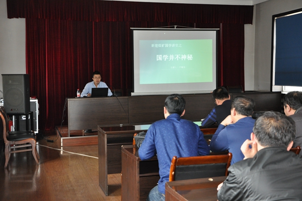 七台河市文艺志愿者协会主席于家全在七台河矿业公司新建煤矿开展国学讲座。