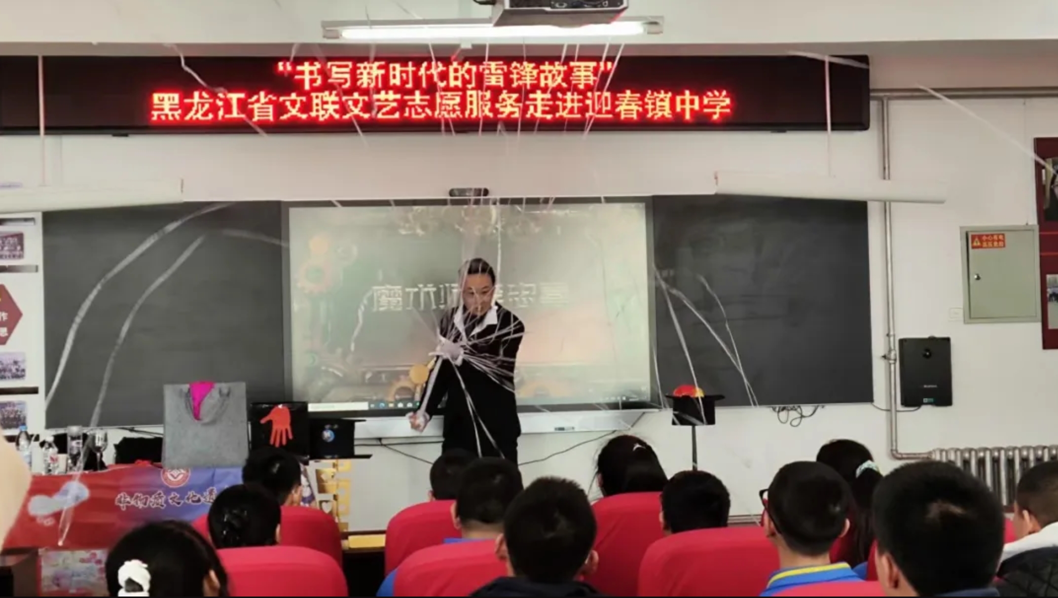 3月5日,正值第62个学雷锋纪念日之际,省文联组织文艺志愿者走进绥化市青冈县迎春镇中学,开展“书写新时代的雷锋故事”主题文艺志愿服务活动,为乡镇师生带来一场别开生面的文艺体验,以文艺之美诠释雷锋精神,用志愿行动传递温暖力量,使全校400余名师生在沉浸式互动中感受传统与现代艺术的魅力。