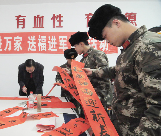 新春佳节即将来临,牡丹江市“书法进万家”送福到军营活动走进海林市。