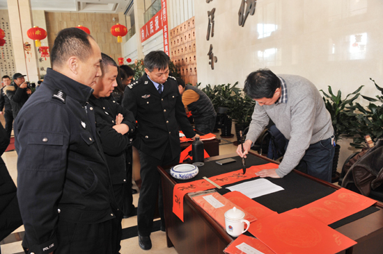 1月17日,牡丹江市文联、市公安局、市书协联合举办的“书法进万家”送福到警营活动隆举办。