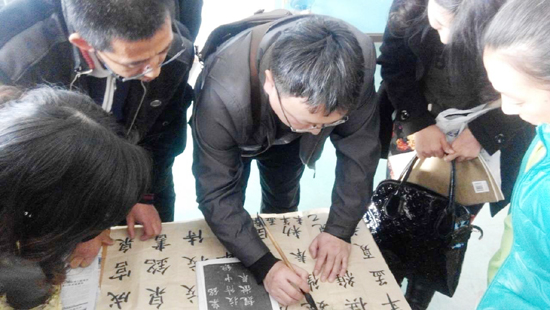 3月10日,在牡丹江市书协副主席、青年书协主席张东昌的带队下,市青年书协成员吴天宝、杨琳、王伟、李伟、刘爽、刘炜星一行7人来到牡丹江市江南经济开发区新建的江南实验学校,为该校题写励志格言类条幅近百幅,极大地丰富了该校的文化建设。