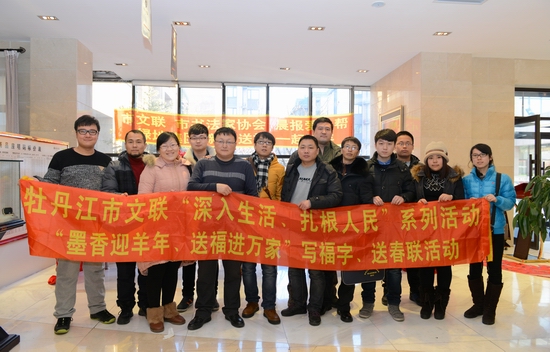 2月7日下午,由牡丹江市文联、市书家协会与晨报爱心帮共同举办的关注空巢、孤寡、失独及贫困家庭老人,为市民写福字、送春联活动在绿地凯旋城销售中心举行。