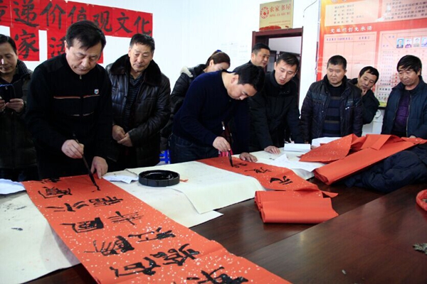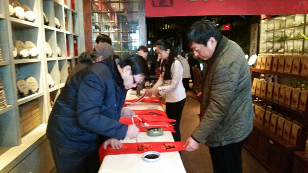 2015年2月10日,佳木斯市书法家协会主席何昌贵率市书协领导班子一行9人,到茶马古道义务为市民书写春联,送去新春的祝福。