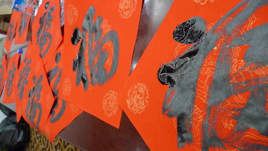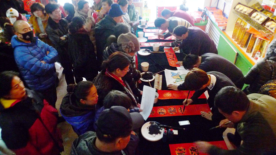 2月1日下午,由牡丹江市文联、市书家协会与晨报爱心帮共同举办的关注空巢、孤寡、失独及贫困家庭老人,为市民写福字、送春联活动在阳明区粟食天府举行。