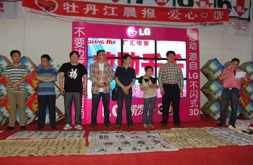 为贯彻落实“接地气、连民心”服务群众教育实践活动,2013年5月25日,牡丹江市文联、市书法家协会与牡丹江晨报共同策划举办的“书法义卖救助儿童”活动在“广汇电器”商场举行。
