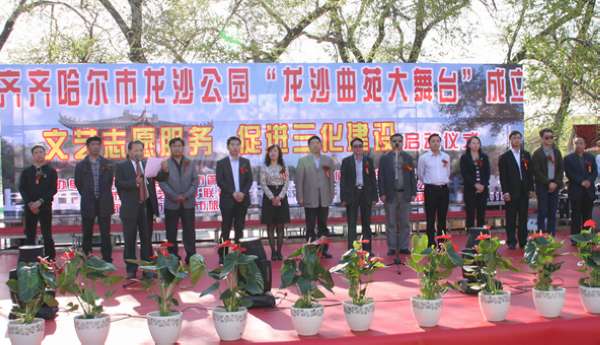 2013年5月15日,齐齐哈尔市文学艺术界“文艺志愿服务,助力‘三化’建设”活动启动仪式暨“龙沙曲苑大舞台”首场演出在龙沙公园文化广场举行。