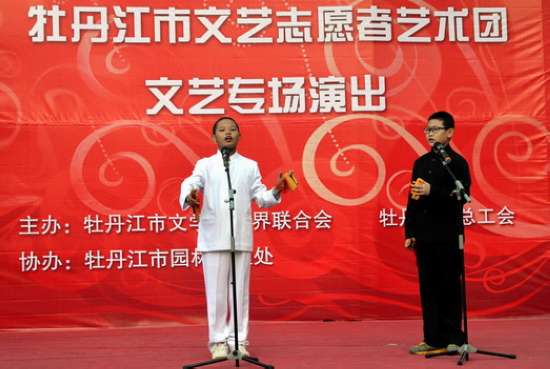 2013年9月15日,为落实“接地气、连民心”服务群众教育实践活动,欢庆中秋佳节,“牡丹江市文艺志愿者艺术团文艺专场演出”在人民公园举行。