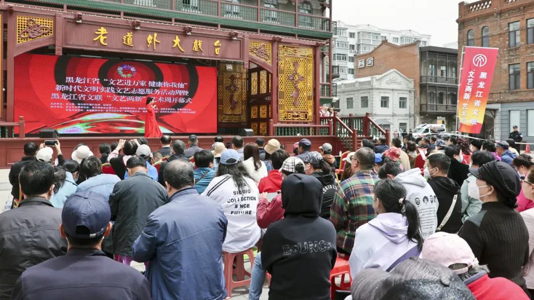 2023年5月21日,黑龙江省“‘文艺进万家 健康你我他’新时代文明实践文艺志愿服务活动周”暨“黑龙江省文联‘文艺两新’艺术周”开幕式在哈尔滨市道外区中华巴洛克街区举行