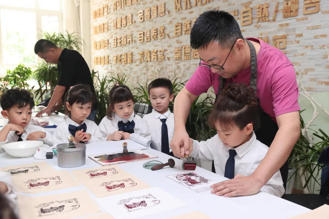 省文联“文化润园”活动中,文艺家走进幼儿园,带领孩子们体验非遗手作