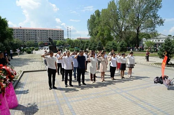 在书写着“人民的好儿子”刘英俊烈士纪念碑前,佳木斯市文联与郊区黑锻社区全体党员干部共同瞻仰了革命烈士遗像,并鞠躬致敬。随后在鲜红的党旗下,20余名党员佩戴党徽,举起右手,庄严宣誓。通过重温入党誓词,使每个党员在党旗下又一次接受了心灵的洗理和净化,激发了党员干部牢记共产党员的政治责任和使命,以更加饱满的热情投身到各自工作当中。