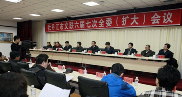 2012年2月24日,牡丹江市文联六届七次全委(扩大)会召开。市委常委、宣传部长闫岩,副部长唐国东,市文联党组书记、主席冯红,副主席刘波、张智勇,书画院院长高洪艺,市文联兼职副主席于宪国、卢声、付军凯、李鼎、陆学凯、葛均义,文联全委委员,六县(市)文联主席,13个文艺家协会主席、副主席、秘书长、副秘书长130余人参加了会议。会议由文联副主席刘波主持。