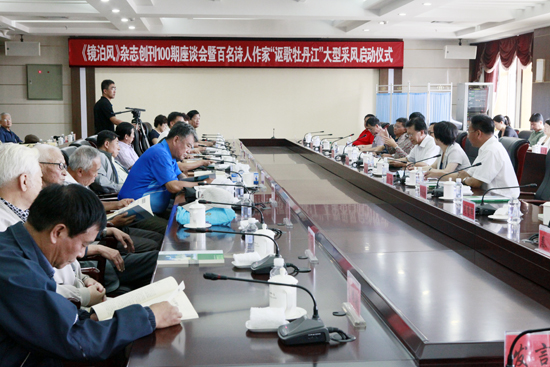 2012年8月31日,牡丹江市文联《镜泊风》杂志创刊100期座谈会暨百名诗人作家“讴歌牡丹江”大型采风启动仪式在牡丹江市举行。牡丹江市委宣传部部长闫岩,市人大副主席杨健平,市级老领导肖广森,市文联主席冯红、副主席刘波及全市知名的作家、诗人、文艺工作者60余人参加了座谈。