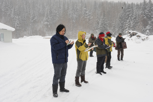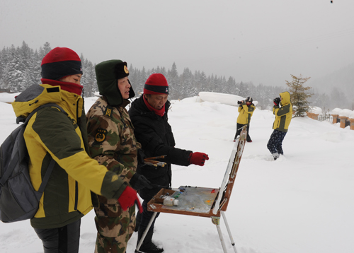 来自全国20多个省、市、自治区的著名画家,被雪乡瑰丽迷奇的冰雪风光所感染,纷纷拿出相机记录这秀美的自然风光。有的画家支上画架,拿出速写本,现场在冰天雪地中写生,一幅幅生动的画作跃然纸上。