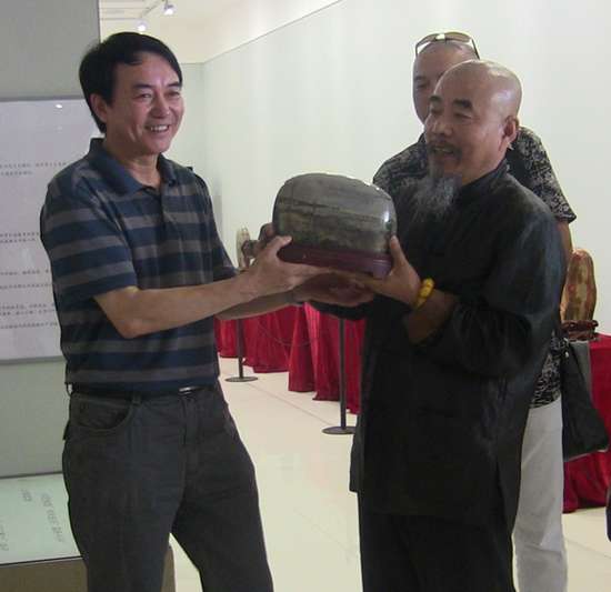 仪式上,关柏春先生向市文联赠送了纪念“环保英雄”徐秀娟微书奇石作品,张训彩少将向主办方赠送了纪念徐秀娟书法作品,市观赏石宝玉石协会特别聘请关柏春为协会名誉主席。