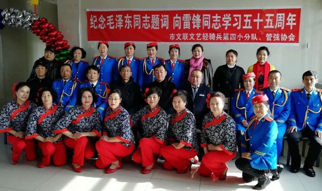 为纪念毛泽东题词“向雷锋同志学习”55周年,按照佳木斯市委宣传部、市文联的统一部署,3月6日至8日,富锦市文联组织多支红色文艺轻骑兵开展了丰富多彩的活动。京剧协会举办了纪念毛泽东同志题词“向雷锋同志学习”55周年京剧专场演唱会。广大京剧爱好者现场表演了“红灯记”等现代京剧选段,歌颂了中国精神,弘扬了传统文化;诗词楹联协会走进繁荣社区、市博物馆、新华书店开展了“志愿服务三江行”赠书活动;管弦协会深入到市老年公寓,为老人们演奏《歌唱祖国》、《东方红》等精彩节目,受到老人们的欢迎。