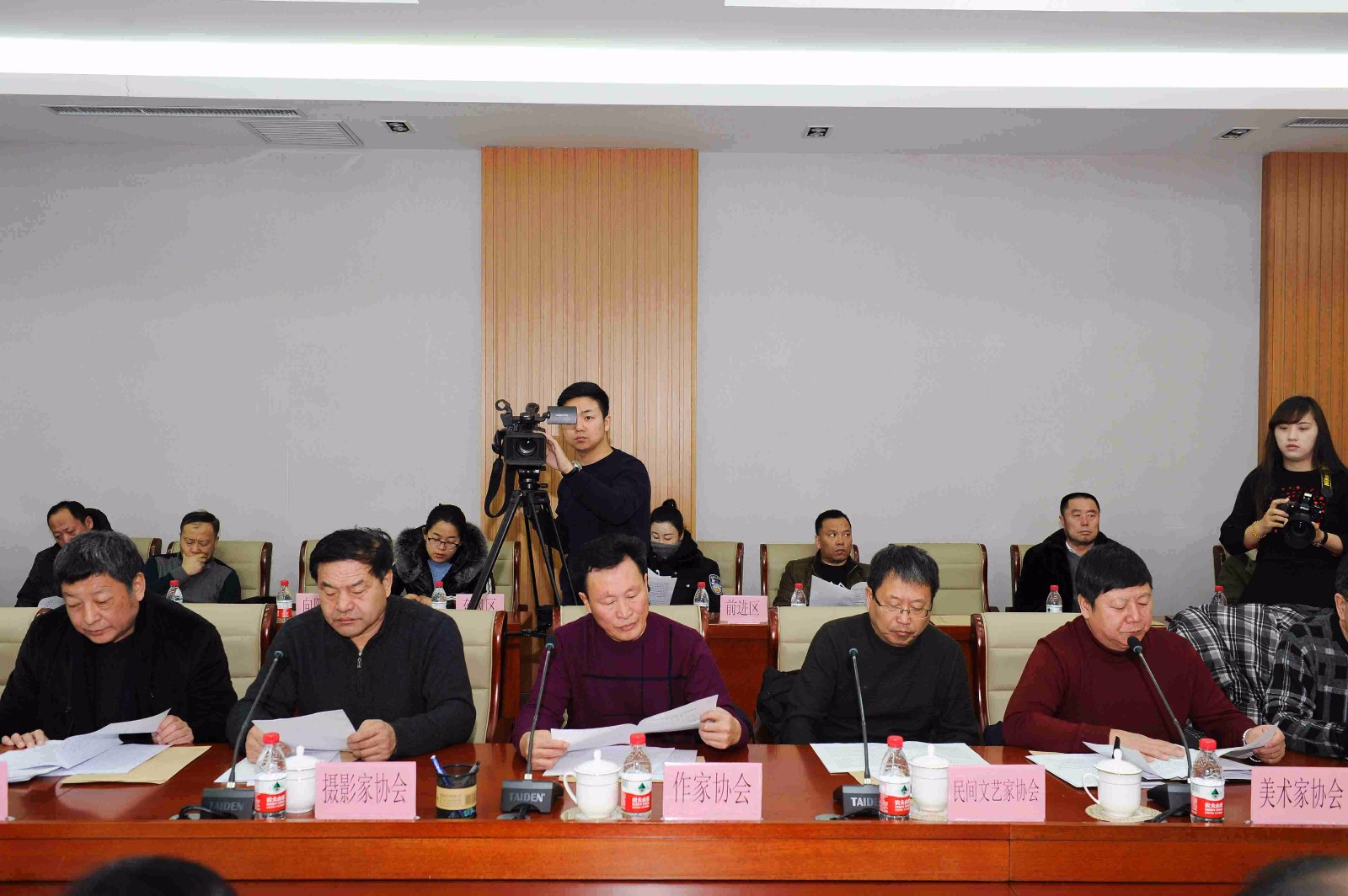 会议由佳木斯市文联党组书记张晓慧主持。会上,市文联党组成员、副主席杜爽传达了省文联六届八次全委会议精神和全市宣传部长工作会议精神。市文联党组书记张晓慧作了题为《贯彻落实党的十九大精神 谱写佳木斯文艺事业新篇章》的工作报告。报告从贯彻党的十九大精神、积极开展主题文艺实践活动、用文艺品牌带动文艺精品创作、开展文艺志愿服务活动、开展对外文化交流、加强党的领导和文艺队伍建设六个方面总结了2017年工作。从以下七个方面部署了2018年工作:一是深入学习贯彻党的十九大精神,用新时代中国特色社会主义思想指导文艺实践;二是弘扬主旋律,积极开展“讴歌新时代 共筑中国梦”主题文艺实践活动;三是用文艺引领社会风尚,积极开展“红色文艺轻骑兵”文艺惠民活动;四是围绕地方特色资源,创新推出文艺精品;五是坚持德艺双馨,着力打造优秀文艺人才队伍;六是促进对外文化交流,不断扩大佳木斯知名度;七是转变工作职能,完成文联深化改革各项任务。