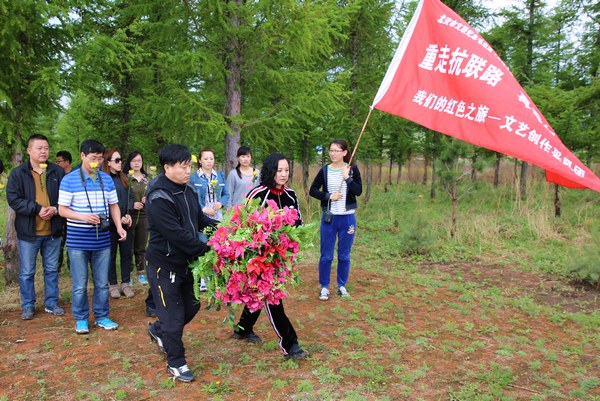 当天上午,市文联各艺术家协会20余名艺术骨干乘车深入到北安市城郊乡革命屯。大家兴致勃勃地参观了即将落成的革命屯抗战历史博物馆。并在讲解员的带领下,认真观看当年抗战历史遗留下来的宝贵物件,细心捕捉创作灵感。随后,采风团一行还来到修缮一新的“革命英烈纪念碑”,为长眠的烈士敬献了花圈。在革命屯采风结束后,大家又乘车来到位于通北林业局的冰趟子战役遗址和白皮营抗联遗址,进行了实地参观采风。