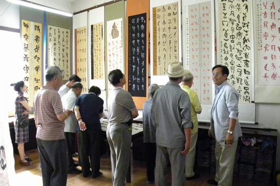 8月14日,牡丹江市老年书画学友会第二届作业汇报展开幕。此次展览展出了26人80余件作品。书体俱全,形式新颖,折射出牡丹江市老年书法的进步和快乐。牡丹江市书协副主席周丹生,佟冬仁,市书协篆书委员会主任武殿洪到场祝贺,并对参展作业进行了点评。会员张立新赋诗一首:夕阳无限识笔友,砚台虽小映春秋。每逢周四学六体,乐趣横生不言愁。金甲互动妙中妙,老师指教手把手。字美情深喜望外,作业入展人高寿。