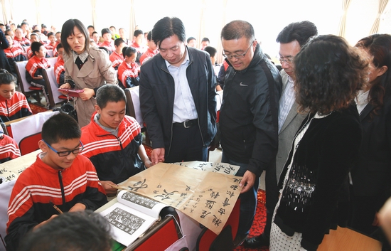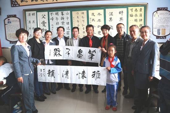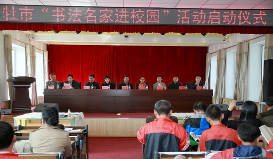 由牡丹江市教育局、市语言文字工作委员会、市书法家协会共同主办的“书法名家进校园”启动仪式于9月17日上午在牡丹江市第九中学和市东华小学举行。黑龙江省语委会副主任孟广智、牡丹江市教育局副局长于春玲、市文联副主席褚保军、市书协副主席宋雷、卢科、秘书长李丹、及市语委办、市普通话培训测试站有关人员及两校师生400余人参加启动仪式。