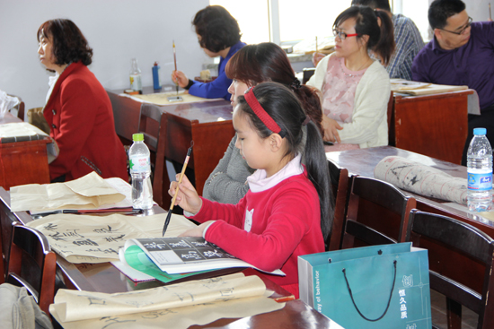 近几年,牡丹江市阳明区教育局把书法写字教学纳入最重要的新课程素质教育教研课程中,将书法作为考察学生素质的重要手段之一。从写字课堂教学的研讨,到教师写字基本功的培训,再到教师学生的写字竞赛,写字教学日臻完善。在培养学生书写素养方面,进行了有益的探索并取得了一定成效。“书法名家进校园”活动更加扎实有效的深化了书法教育教学的内容。本次培训市书协副主席张东昌以王羲之的圣教序为范本,向参加培训的全市中、小学教师就行书临习与创作进行了全面的阐述,并现场进行书法临帖示范,对参加培训的教师与学生进行了面对面的辅导。