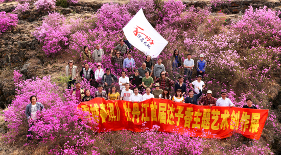 和煦的春风吹开了嫩绿的笑脸, 灿烂的达子香摇曳着妖娆的身姿。4月29日,为即将举行的由牡丹江市文联主办、市新思路广告文化艺术传播有限公司承办、牡丹江恒大地产集团协办的“雪城春讯”牡丹江首届“达子香”主题艺术创作展做前期的创作准备,牡丹江市文联根据本次活动创作主题,选调了全市文学、书法、美术、摄影四个文艺门类的创作骨干、文艺名家近50人参加活动,组成了一个文艺门类多样、队伍庞大的采风创作队伍,在展览举办前夕到宁安市沙兰镇进行集体创作采风活动。在全市文艺界,一次性组织不同文艺门类为了一个主题进行采风创作尚属首次。
