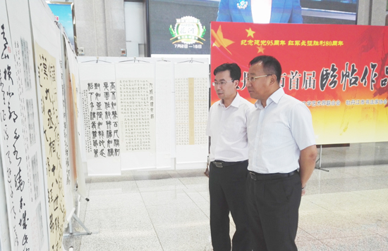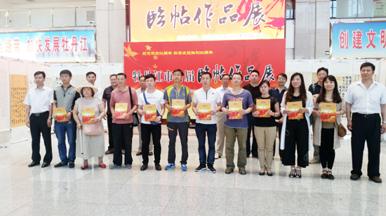 为纪念中国共产党成立95周年和红军长征胜利80周年,贯彻落实习近平总书记在全国文艺工作座谈会上的讲话精神和中共中央关于繁荣发展社会主义文艺的意见精神及“深入生活、扎根人民”主题实践活动,将“两学一做”活动深入开展,铭记历史,弘扬优秀传统文化,按照市书协提出的“牡丹江市书法创作人才三年培养计划”的总体布署和“一书两刻”的创作导向,进一步加强对传统书法艺术精髓的研究和继承,全面检验牡丹江市书法爱好者的传统功力,引导全市书法工作者及爱好者书法创作方向,6月28日,牡丹江市文联、市书协共同主办的纪念建党95周年、红军长征胜利80周年牡丹江市首届书法临帖作品展开幕式在江南党政办公中心隆重举行,这也是牡丹江市书法界为中国共产党95岁生日献上的一份厚礼。牡丹江市文联副主席禇保军、市书协顾问贾振祥、孟飞,市书协主席韩润森、副主席宋雷、周丹生、张东昌、张永昌、佟冬人及临帖展获奖、入展作者,来自市区、周边县市的书法工作者和爱好者近400人参观了展览。开幕式由市书协秘书长李丹主持。