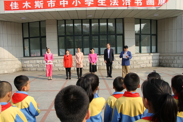 9月19日,由建设法治佳木斯工作委员会法治宣传教育组、佳木斯市司法局、佳木斯市教育局、共青团佳木斯市委员会、佳木斯市文学艺术界联合会联合举办的全市中小学生法治书画展在市青少年书法报社隆重举行。市委宣传部副部长杨立波、市司法局副局长王尔夫、市教育局副局长于庆澎、共青团市委副处级调研员王乐陶、市文联副主席杜爽和获奖单位的领导、老师、同学代表以及市第九小学的学生代表共计150余人参加了活动。活动由市司法局常务副局长、建设法治佳木斯工作委员会法治宣传教育组办公室主任王尔夫主持。市教育局副局长于庆澎宣读了《全市中小学生法治书画作品评选活动评比结果通报》;与会领导为获奖代表进行颁奖;市委宣传部副部长杨立波同志作了重要讲话。