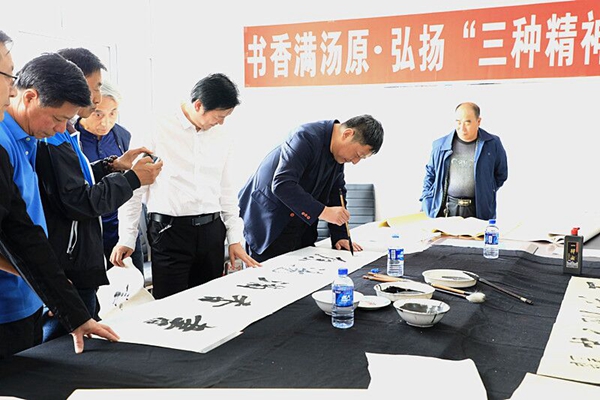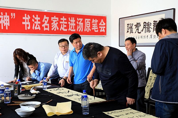 5月4日汤原文联举办“书香满汤原·弘扬三个精神·书法名家走进汤原笔会”活动,县委常委、宣传部长李长久,原人大主任、书协主席苏俭,原政协主席郭迎春岀席活动。汤原县文联邀请了佳市书协主席李月贵,副主席葛世权、程宝仁、王海龙,桦南原书协主席周晖,秘书长王国强等人参加活动,汤原部分书法家参与了笔会交流活动