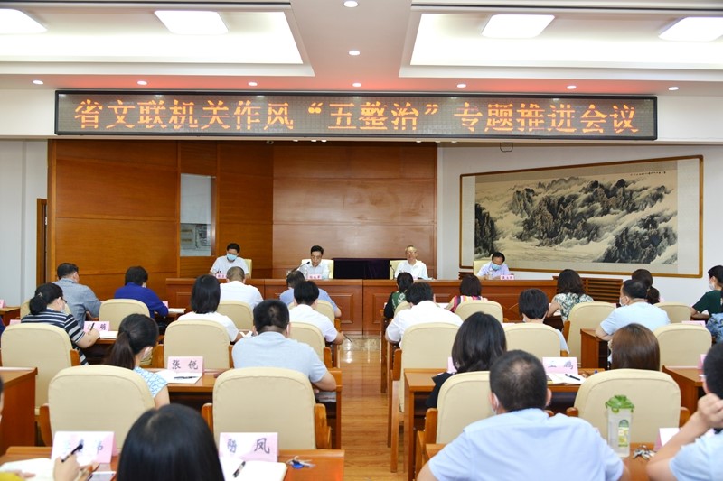 按照省委作风整顿办工作安排,为切实转变文联机关干部作风,营造干事创业的良好风气,整治党员干部不落实、不研究、不作为、不在状态、不守纪律方面的问题,7月21日,省文联召开机关作风“五整治”专题推进会。韩会峰主席主持会议,其他领导班子成员以及机关全体干部职工、直属事业单位班子成员参加会议。会议对文联的根本属性、中心工作进行了深入分析解读,对全体干部职工在工作中建立和遵守规范,提高自身素质,加强自我把握和自我约束等方面提出要求、作出部署。