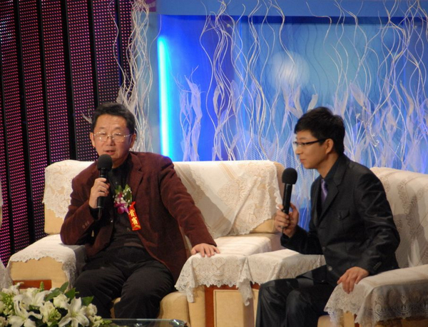 词曲作家王德、刘锡津接受主持人采访