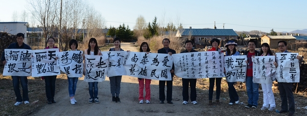 此次活动围绕学习和践行“爱国、为民、崇德、尚艺”的文艺界核心价值观和《中国文艺工作者职业道德公约》,以建设“富强龙江、文明龙江、和谐龙江、大美龙江、幸福龙江”为宗旨,是今年来黑龙江省青年艺术家下基层的一项重要活动。活动期间特邀原黑龙江省书法家协会副秘书长、《书法赏评》杂志常务副主编、著名书法家卞云和先生亲临指导创作,并现场挥毫泼墨,书写了文艺界核心价值观和《中国文艺工作者职业道德公约》等书法作品,赠送给青年文艺工作者和林场职工。